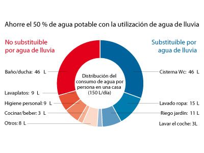 El agua de lluvia la podemos reutilizar para todos los usos que no requieran agua potable: